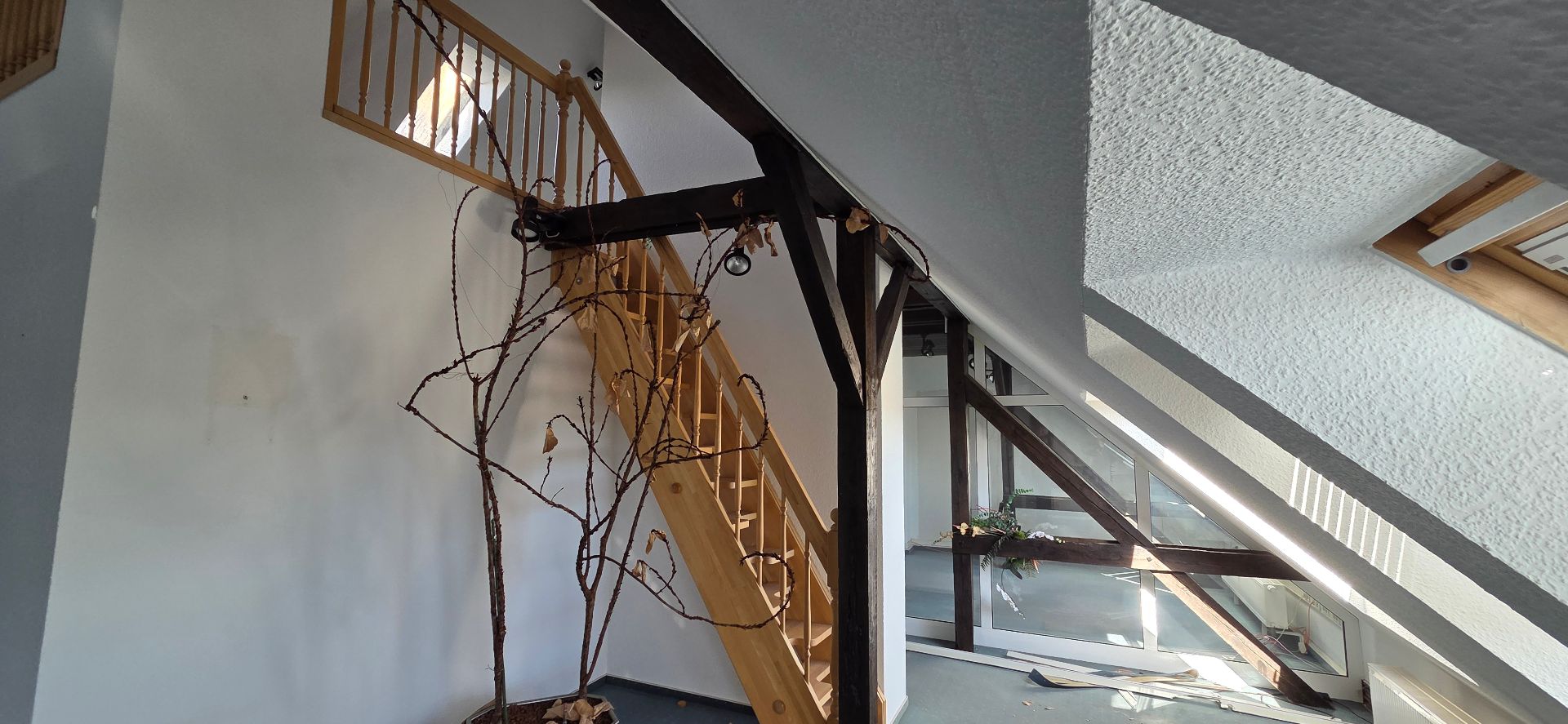 - Die Immobilie überzeugt durch ihre gute Ausstattung: Teilmöblierte Einheiten, sichtbare Deckenbalken in den Obergeschossen, großzügige Glasflächen sowie ein repräsentatives, lichtdurchflutetes Treppenhaus verleihen dem Gebäude eine besondere architektonische Qualität und eine angenehme Arbeits- und Aufenthaltsatmosphäre.